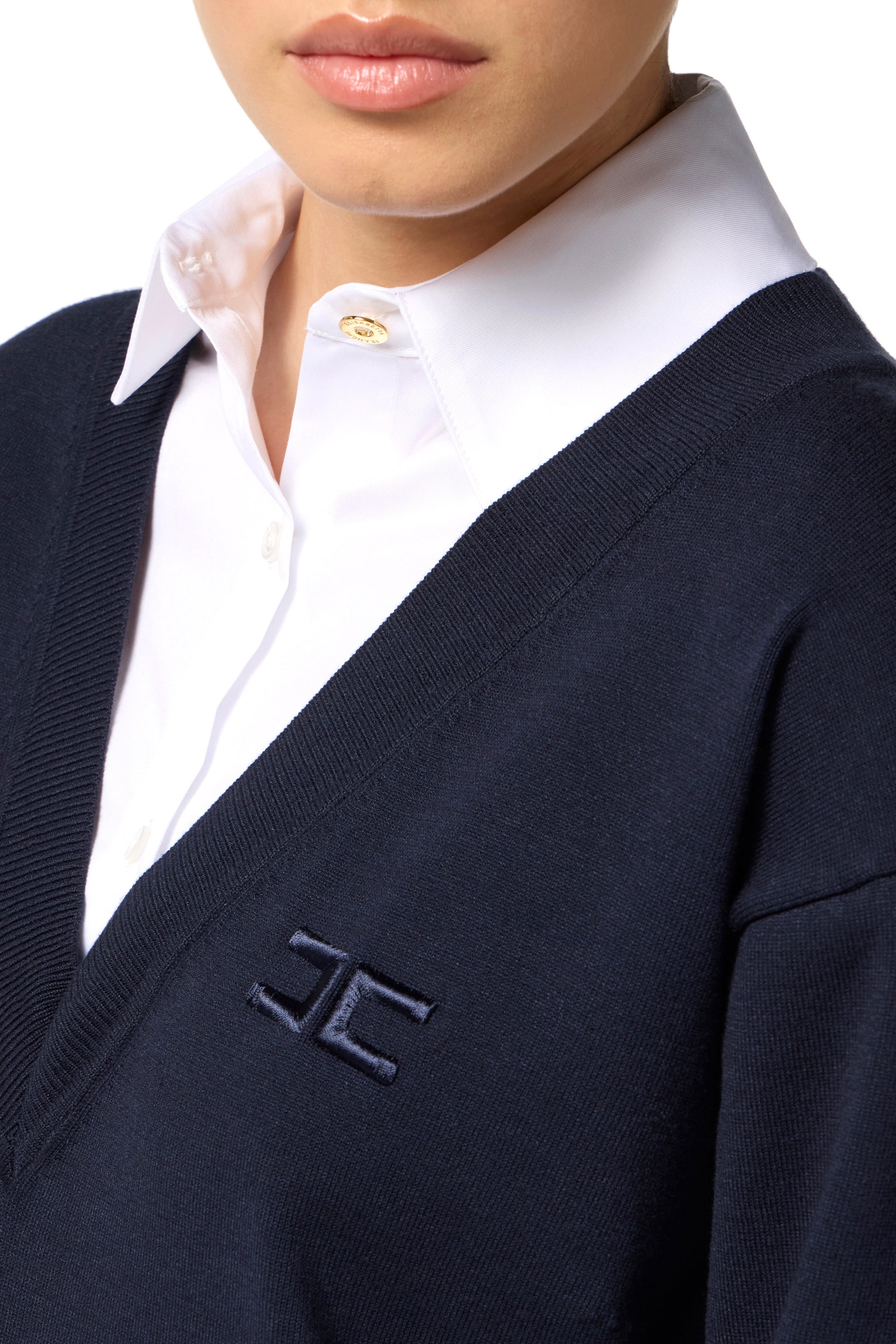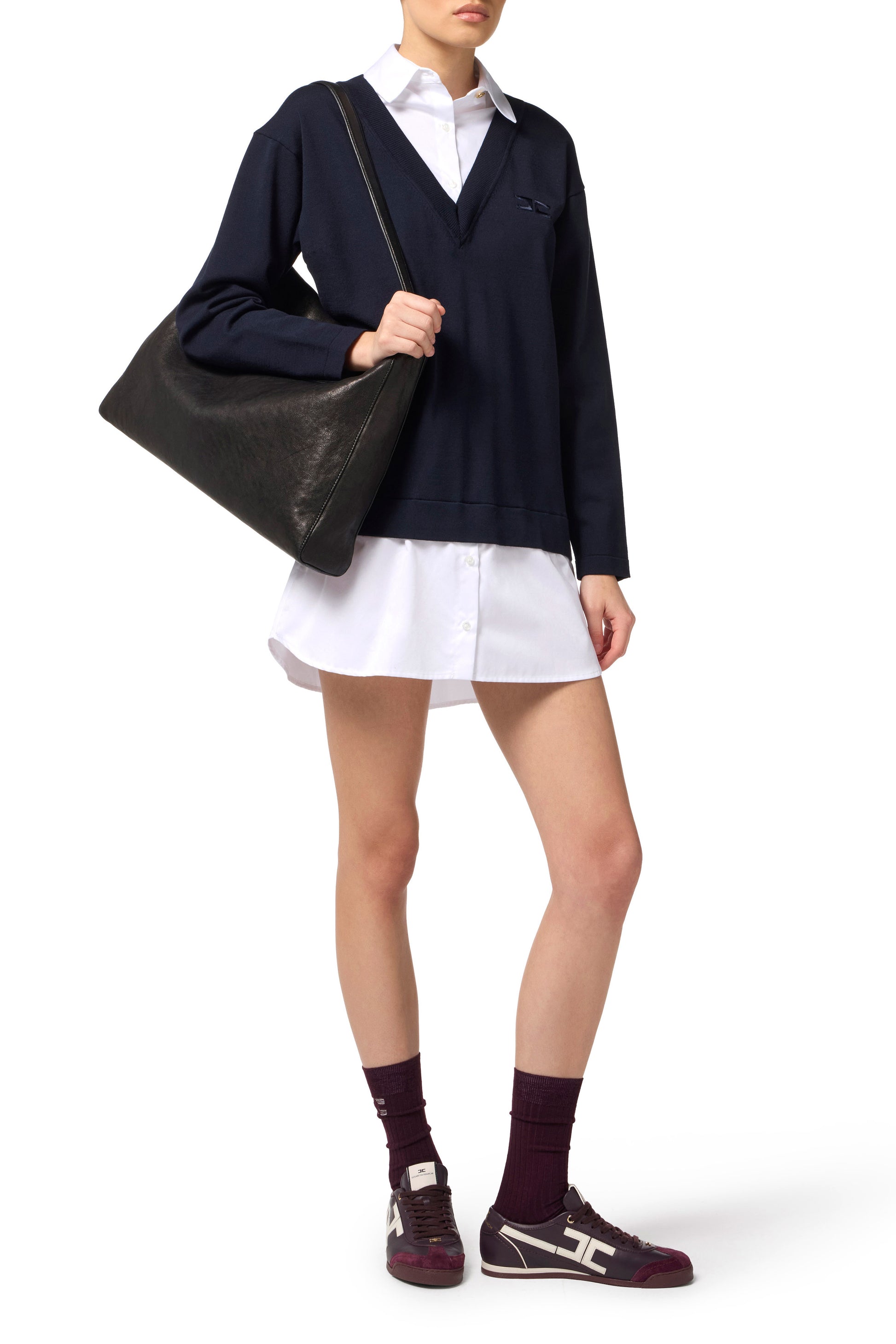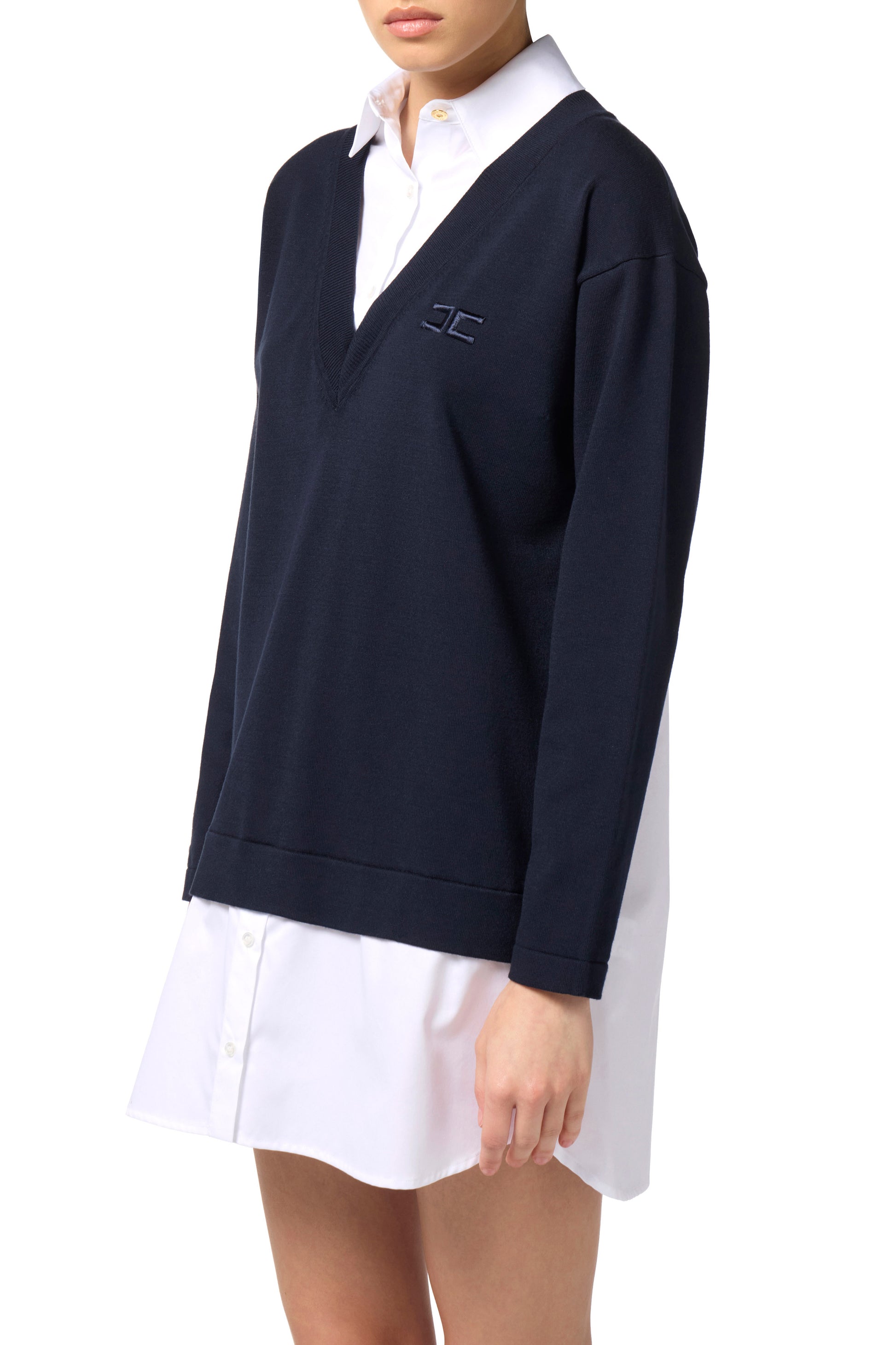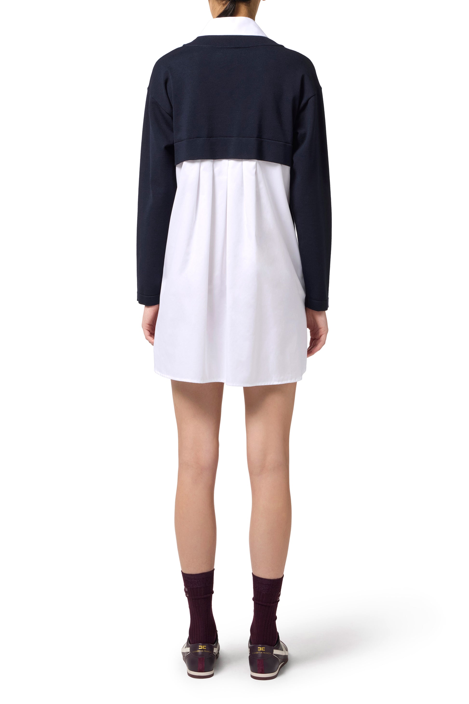 Dress consisting of cotton poplin shirt and viscose top. The shirt has a classic collar embellished with a golden metal logo button, while the top has a V-neck with logo embroidery on the chest and a cropped back. In a college style, it has a regular fit.