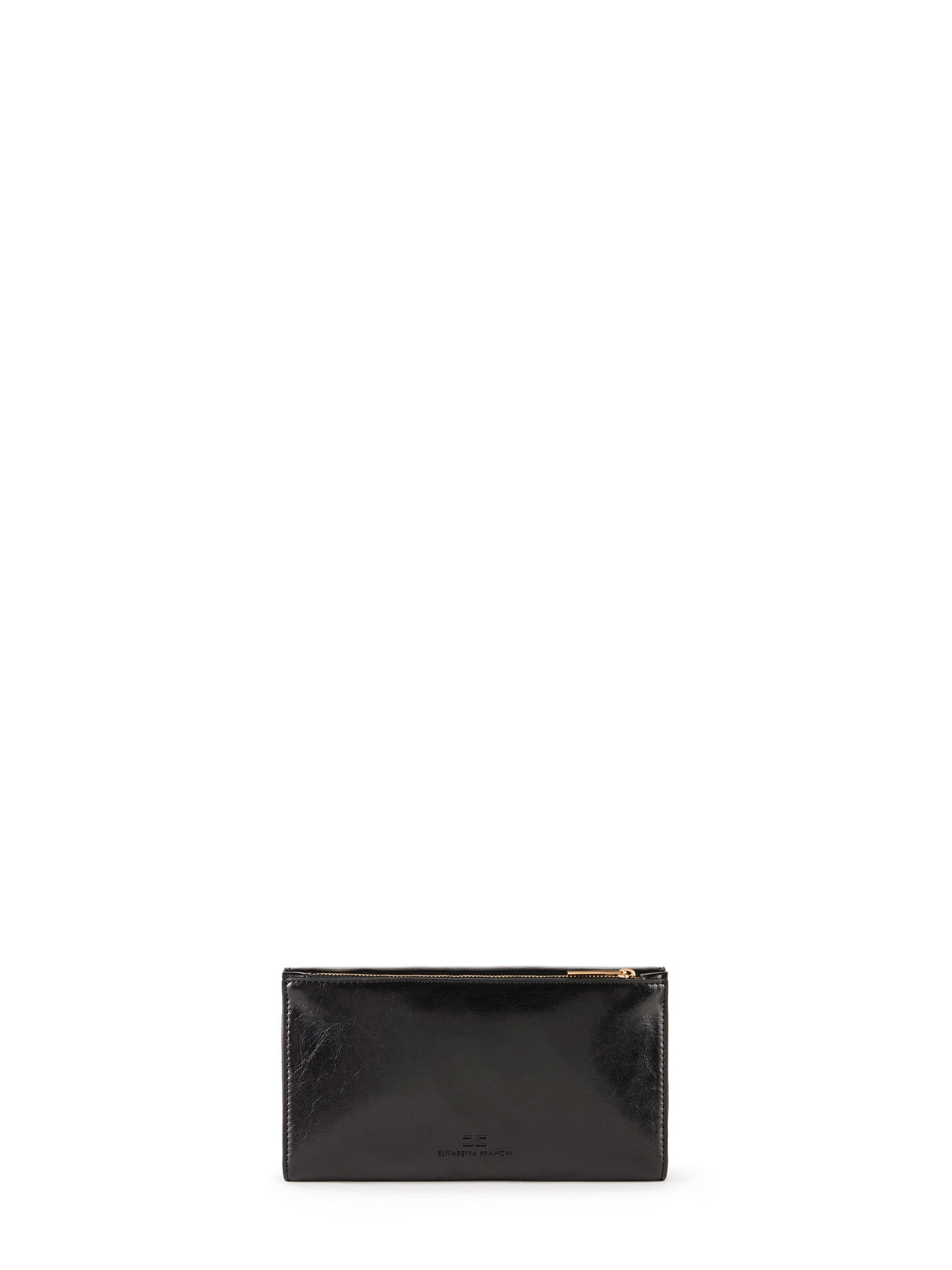 Wallet made in leather-effect synthetic material. It is embellished with golden metal logo details.