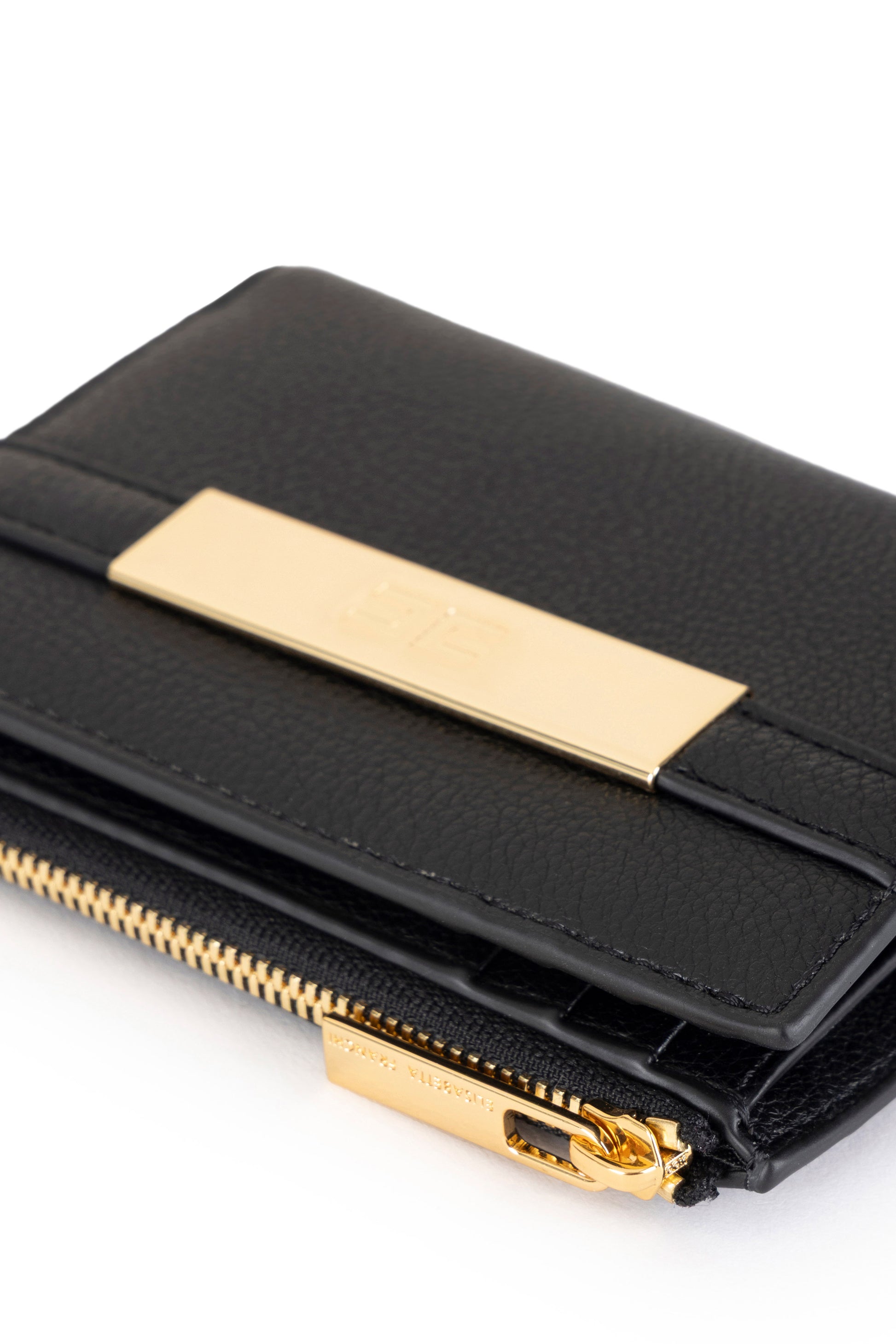 Wallet made in leather-effect synthetic material. The accessory is embellished with a plaque with logo and zip closure.