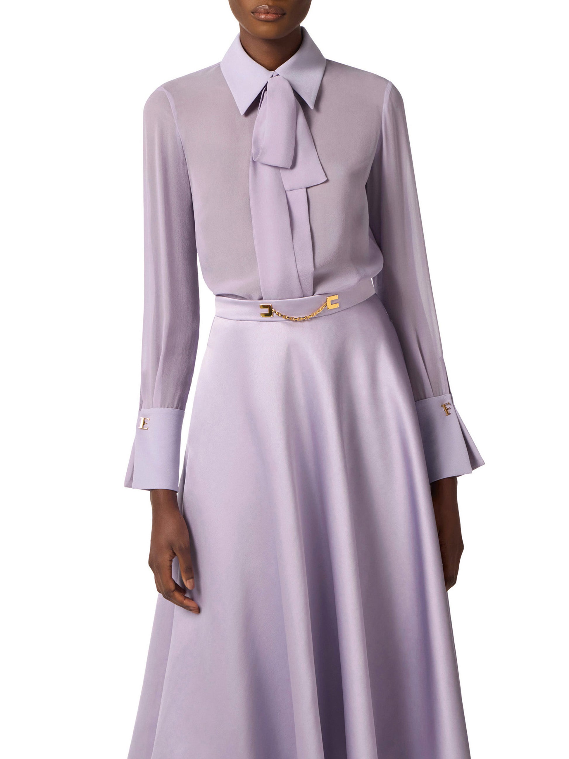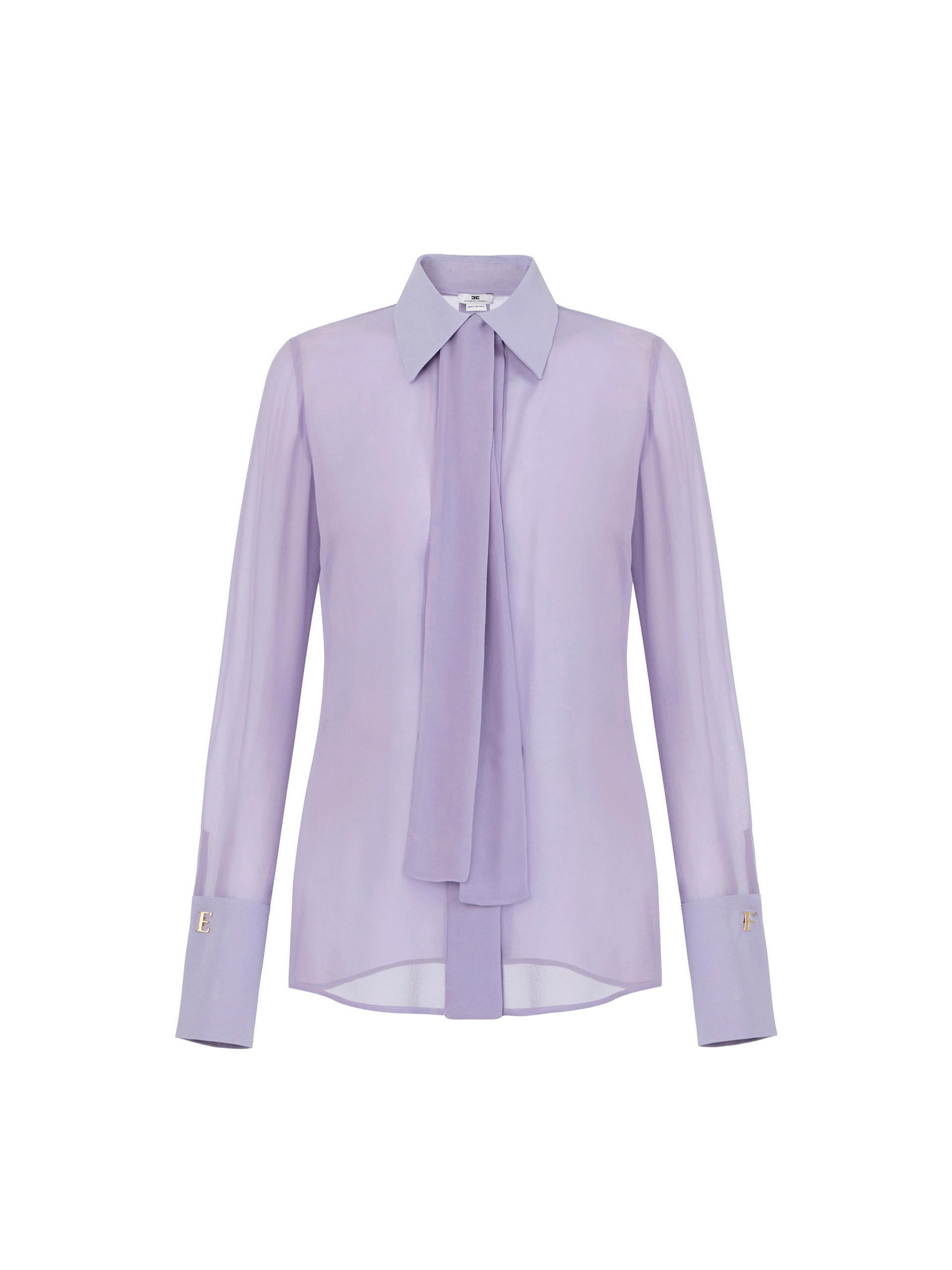 Blouse in georgette fabric with long sleeves and regular fit. The collar and cuffs are made in crêpe fabric for a refined contrast of textures. The neck sash adds an elegant touch. Logo cufflinks add a subtle sparkling detail.