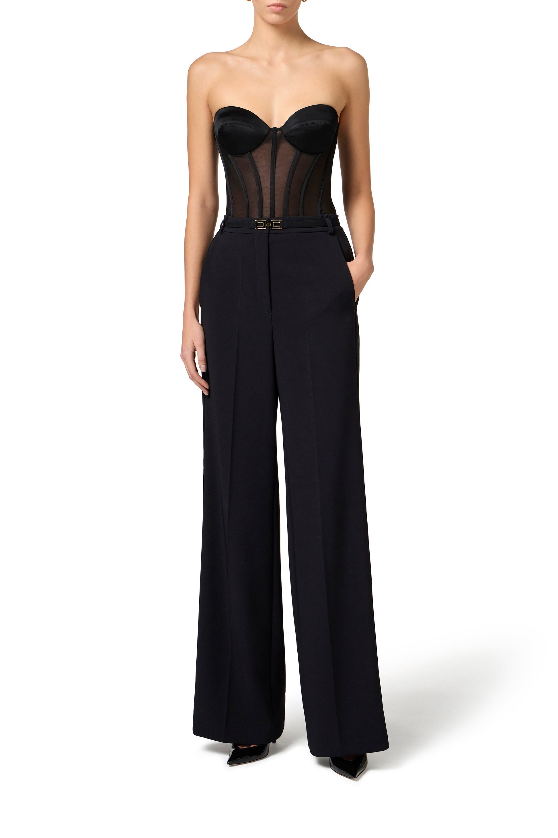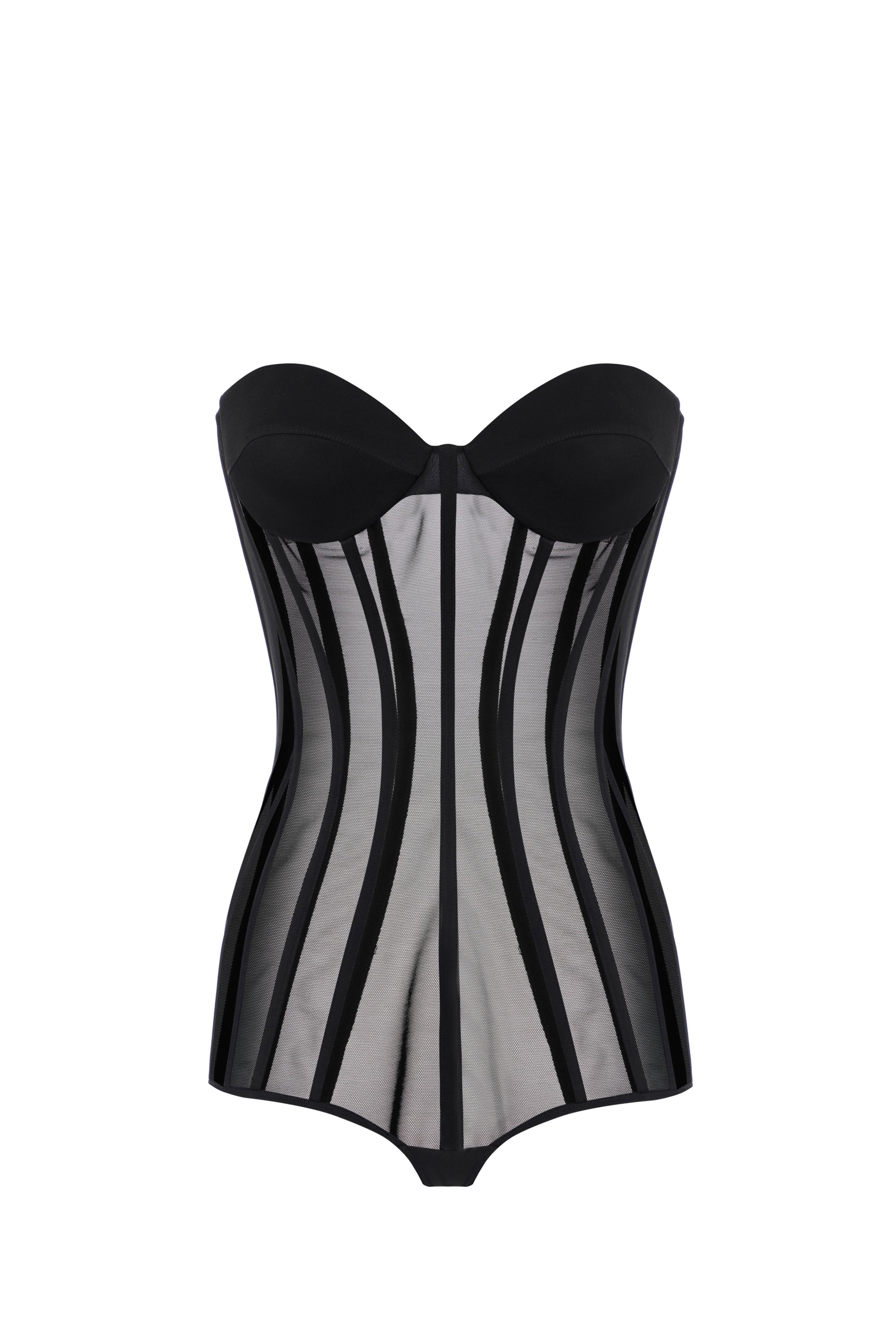 Bodysuit in tulle fabric. Inspired by the most seductive corsetry, it has a bustier construction with internal splints that give structure and sensuality to the silhouette. Slim fit.