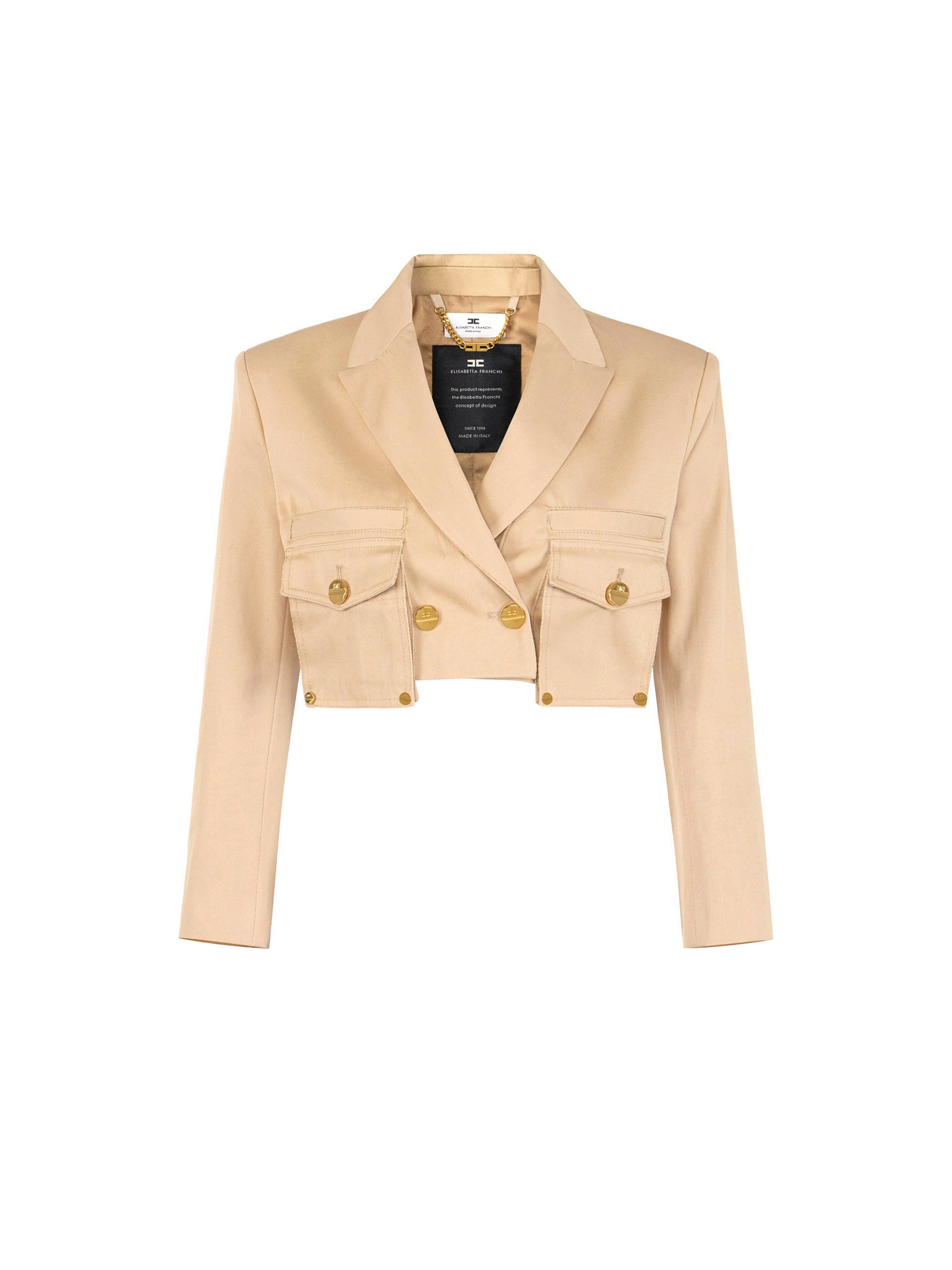 Cotton gabardine jacket. The cropped blazer has structured shoulders, peak lapels and double-breasted fastening. The flap cargo pockets are decorated with golden metal buttons and rivets that add sparkle. Regular fit.