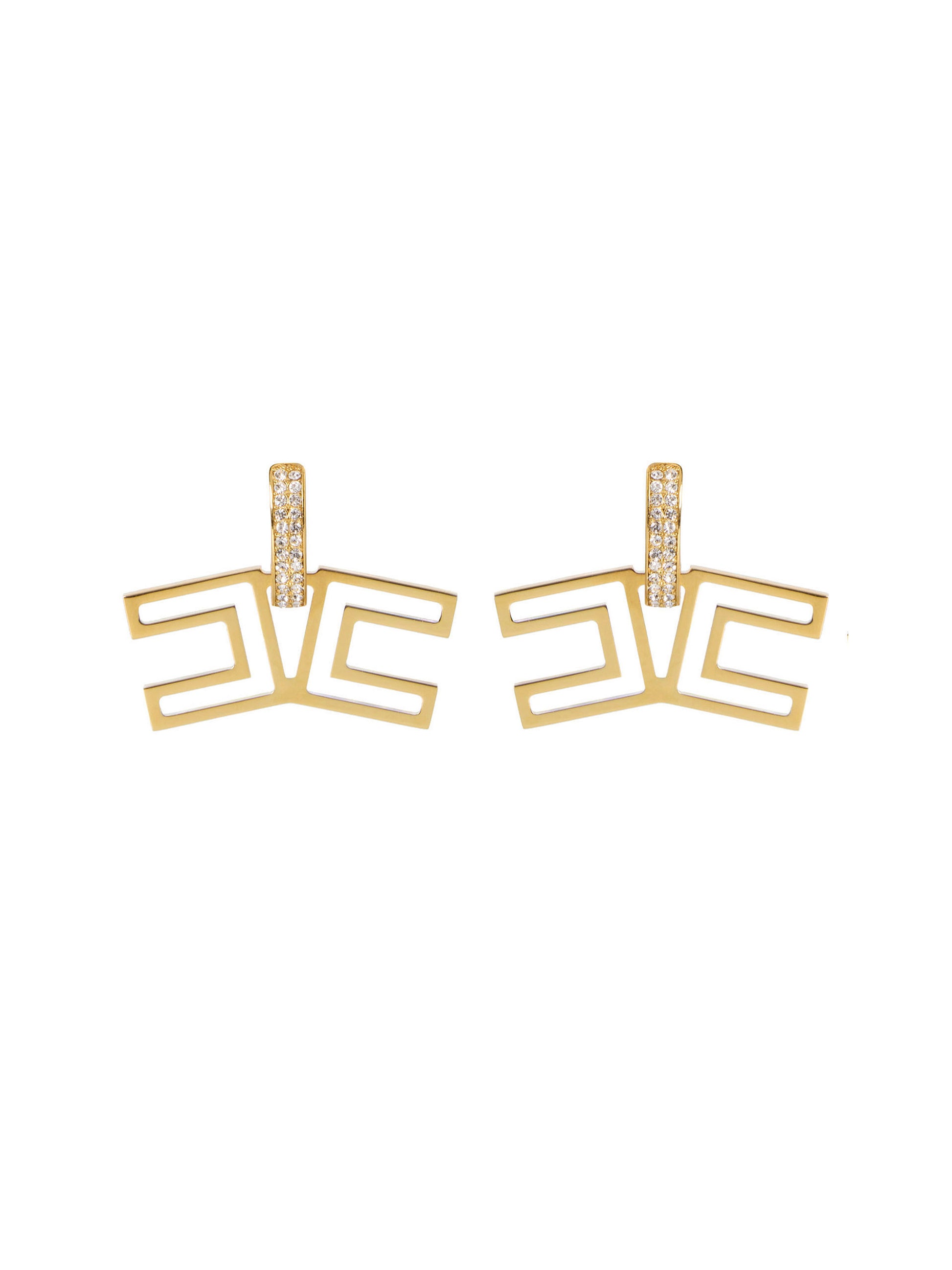 Earrings made of metal with a golden finish. Illuminated by a set of rhinestones, they are personalised with a logo detail.